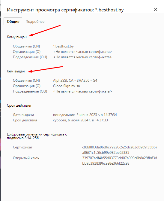 – SSL-сертификат, подписанный доверенным центром сертификации (ЦС), – обеспечивает дополнительный уровень доверия и безопасности. Доверенные центры сертификации – это надежные третьи стороны, которые выпускают SSL-сертификаты для аутентификации веб-сайтов и подтверждения их подлинности. Например, Timeweb использует центр сертификации GlobalSign.